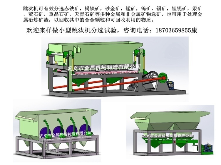 您可能對(duì)跳汰機(jī)分選石榴石有著諸多的疑慮,這些疑慮是可以通過實(shí)驗(yàn)的方式幫您解決的,鞏義市金昌機(jī)械有小型實(shí)驗(yàn)用跳汰機(jī),歡迎來樣實(shí)驗(yàn)礦石,看看到底能選到哪種程度,選出的產(chǎn)品您可以拿到市場(chǎng)上了解一下價(jià)值,如果各方面都是有利潤(rùn)的情況下,您就可以購買設(shè)備進(jìn)行投資,這是一條比較穩(wěn)妥的生意,歡迎咨詢鞏義市金昌機(jī)械制造有限公司。