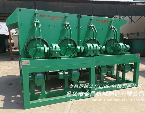 實驗取得了圓滿的成功,那么實際生產(chǎn)用哪種跳汰機設(shè)備更為合適呢?這里我們建議客戶使用2LTC6109/8T梯形跳汰機設(shè)備,這種跳汰機有8個工作室,兩個為一組,沖程、沖次和用水量是可以單獨調(diào)節(jié)的,此種跳汰機進料口為1.2米,出料口為2米,水流越走越緩,有利于細(xì)顆粒的回收,效果還是非常出色的,當(dāng)然這種跳汰機價格可能會稍微高一點,其次就是用LTA系列跳汰機,這種跳汰機對此種礦物的回收也是非常有效果的,此種跳汰機價格會便宜一些。選擇哪種型號的跳汰機設(shè)備,這要根據(jù)您的處理量來決定。